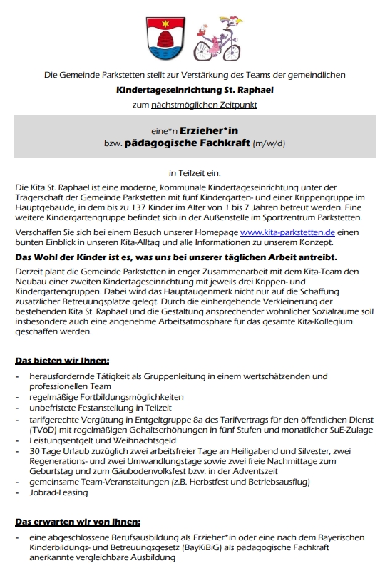Stellenausschreibung Veröffentlicht am 6. Februar 2026 von Melanie Gerl für eine/n Erzieher/inbzw. pädagogische Fachkraft (m/w/d)
